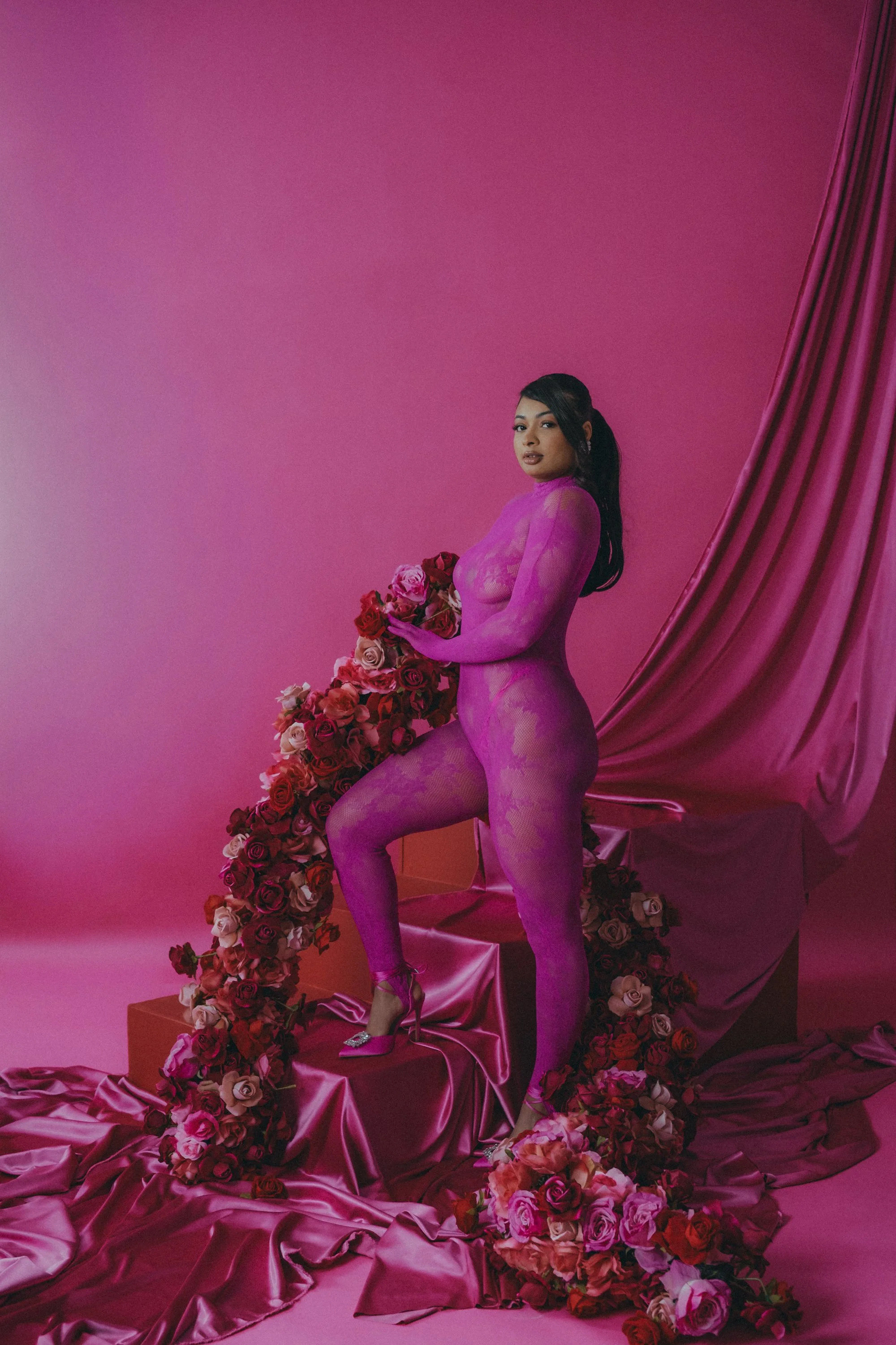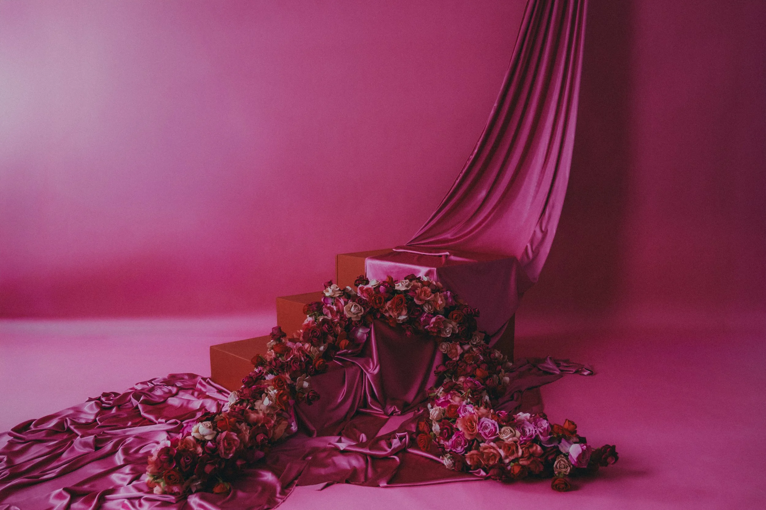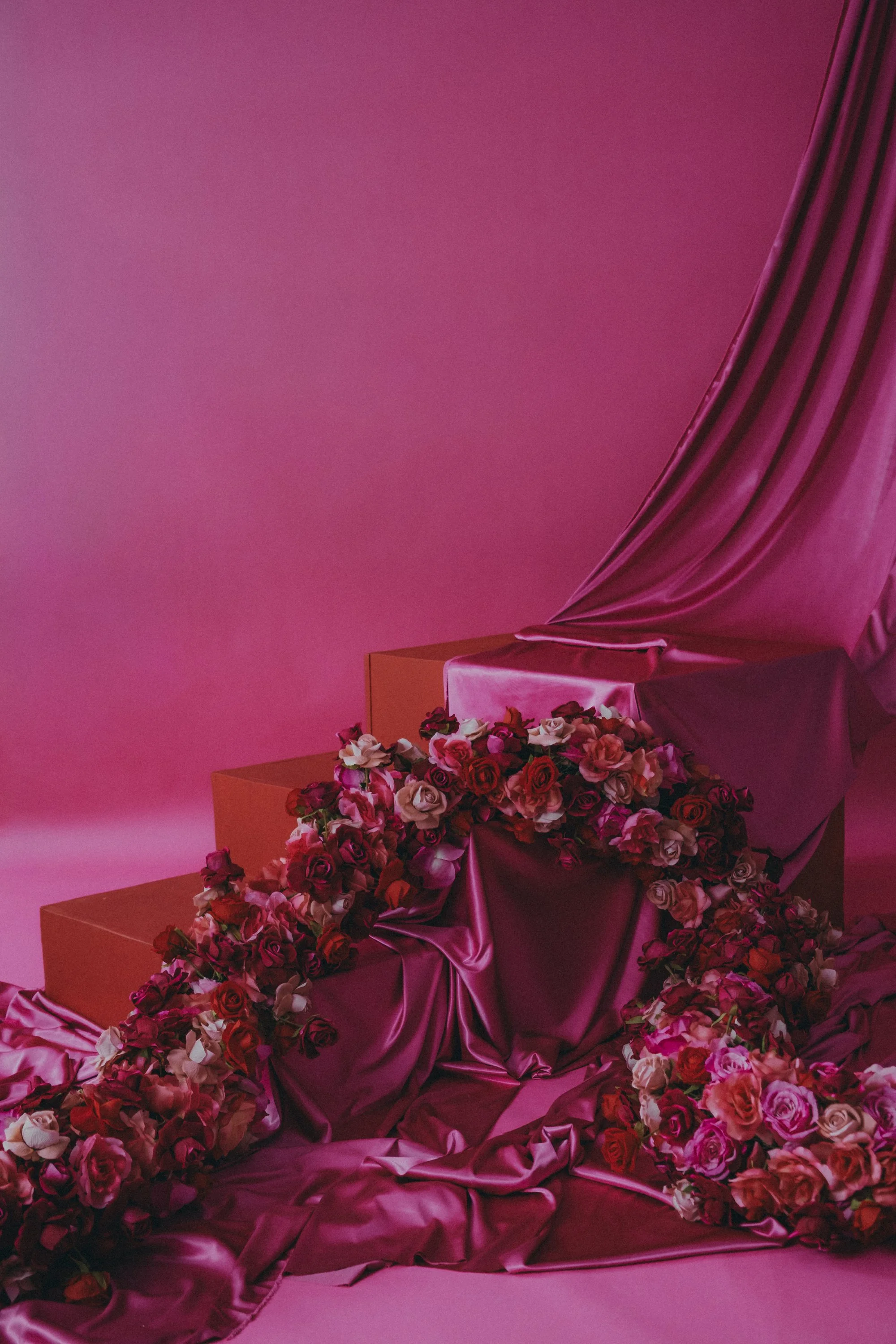 Designed in collaboration with Bralettes & Brunch, this year’s Valentine’s installation at Loom features two curated concepts for romantic and editorial storytelling. One space showcases a vibrant hot pink backdrop accented with a dramatic floral garland, while the second embraces deep red tones with layered curtains, faux candles, and chandeliers. Together, they create a refined yet bold setting for Valentine’s-inspired imagery.
